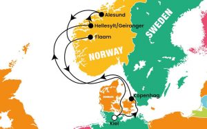 Kiel – Kopenhag – Hellesylt / Geiranger – Alesund – Flaam – Kiel