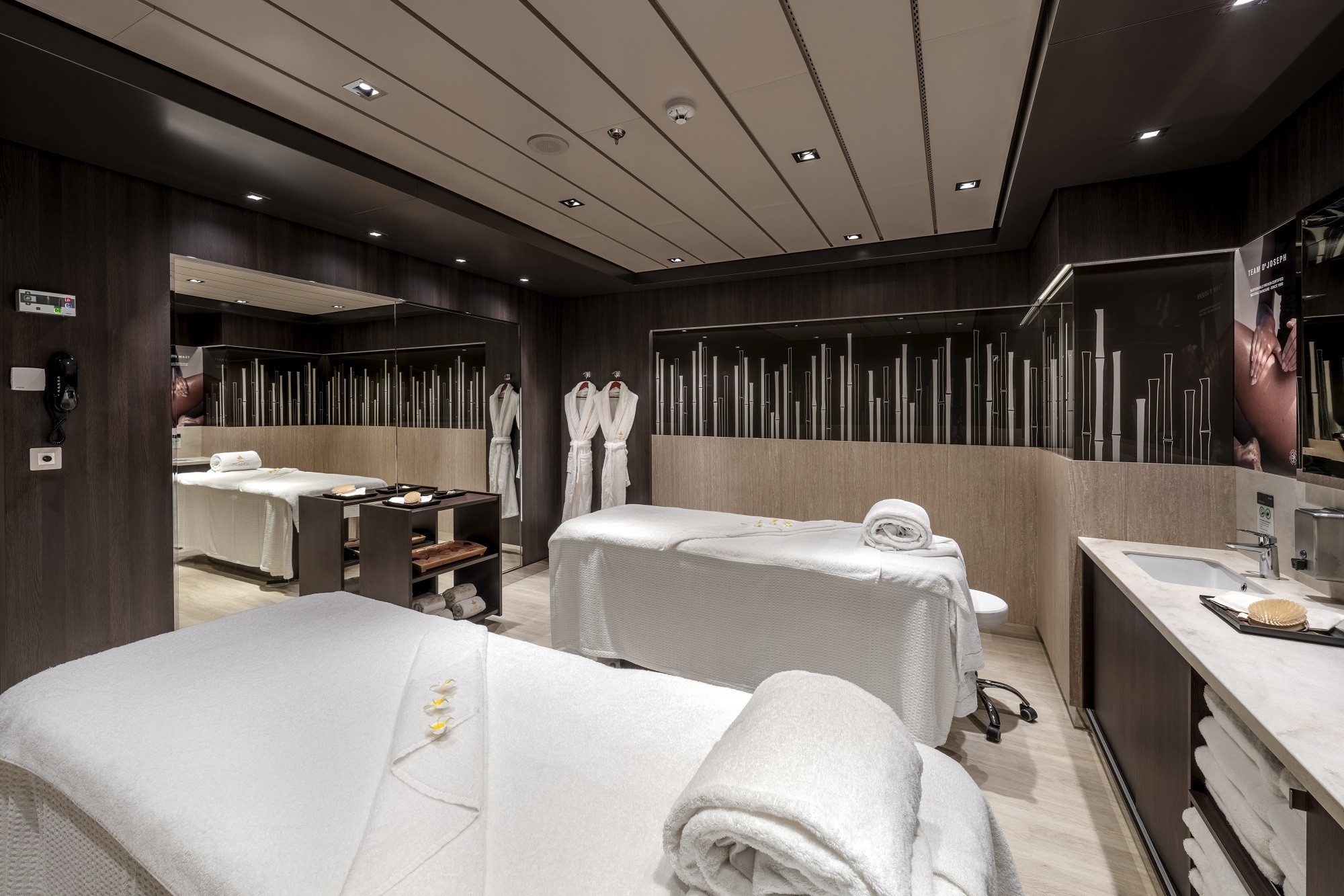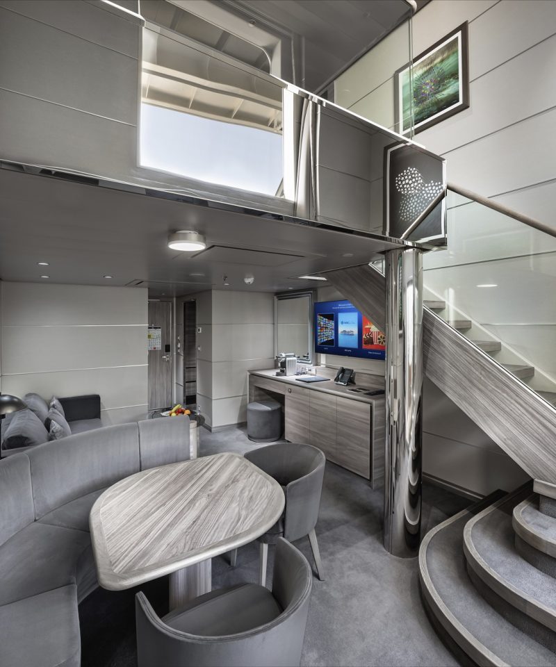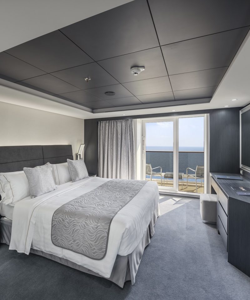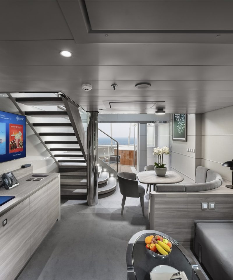 Güverte 7’de yer alan SJ Kabinler (22 m2) büyüklüğünde olup iç mekânlarında 2 kişi, 2 alt yatak, kanepe, duşlu banyo veya küvetli banyo, klima, telefon, saç kurutma makinesi, kasa ve TV bulunmaktadır. Max. 4 kişi konaklayabilir.