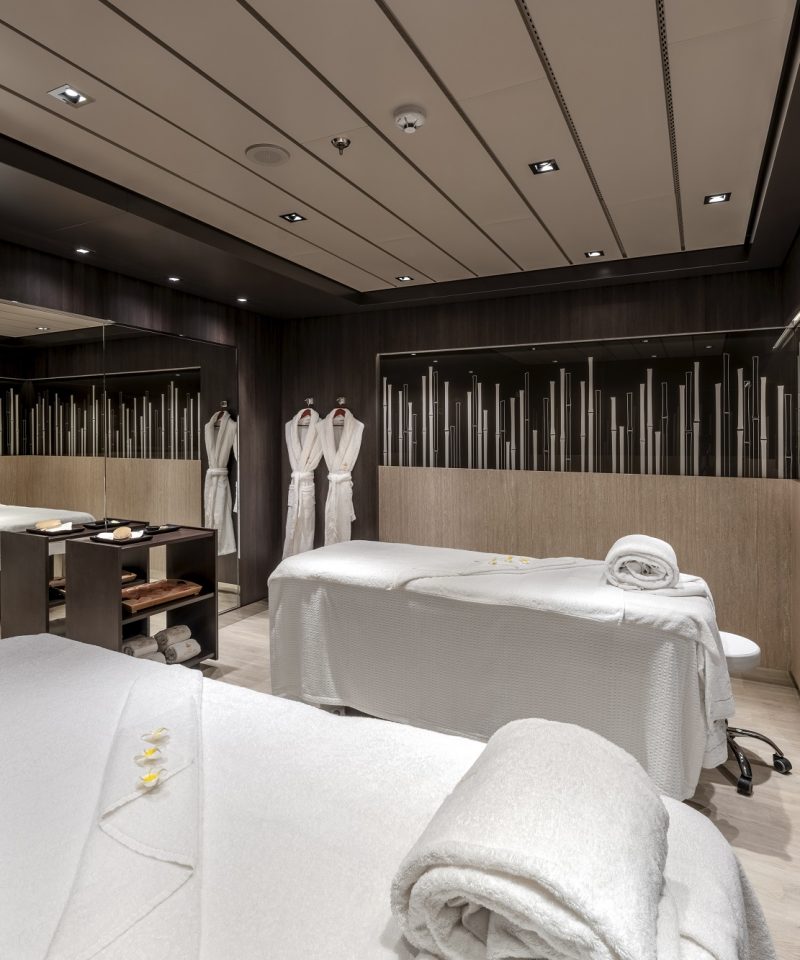 Güverte 9’da yer alan SG Kabinler (35 m2) büyüklüğünde olup iç mekânlarında 2 kişi, 2 alt yatak, kanepe, duşlu banyo veya küvet, klima, telefon, saç kurutma makinesi, kasa ve TV bulunmaktadır. Max. 4 kişi konaklayabilir.